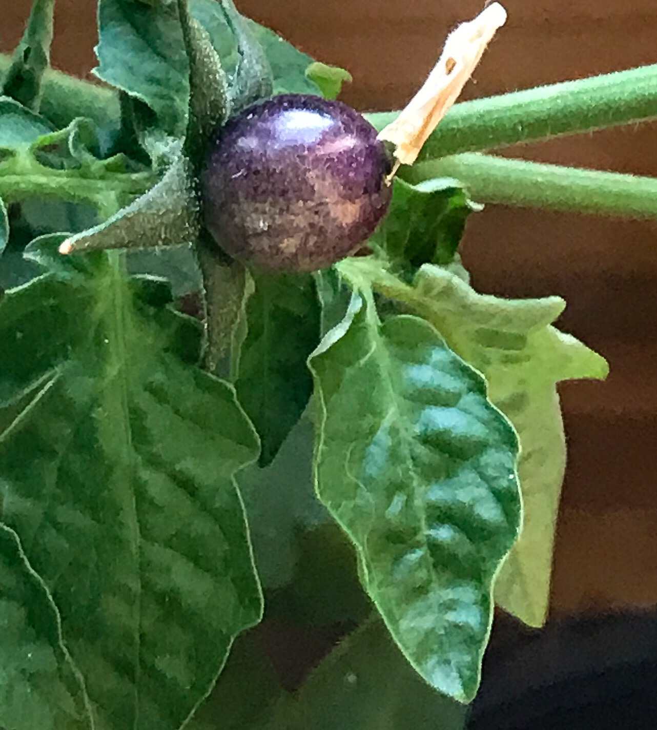 I just noticed this purple tomato on one of my tomato plants in my sun porch.