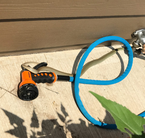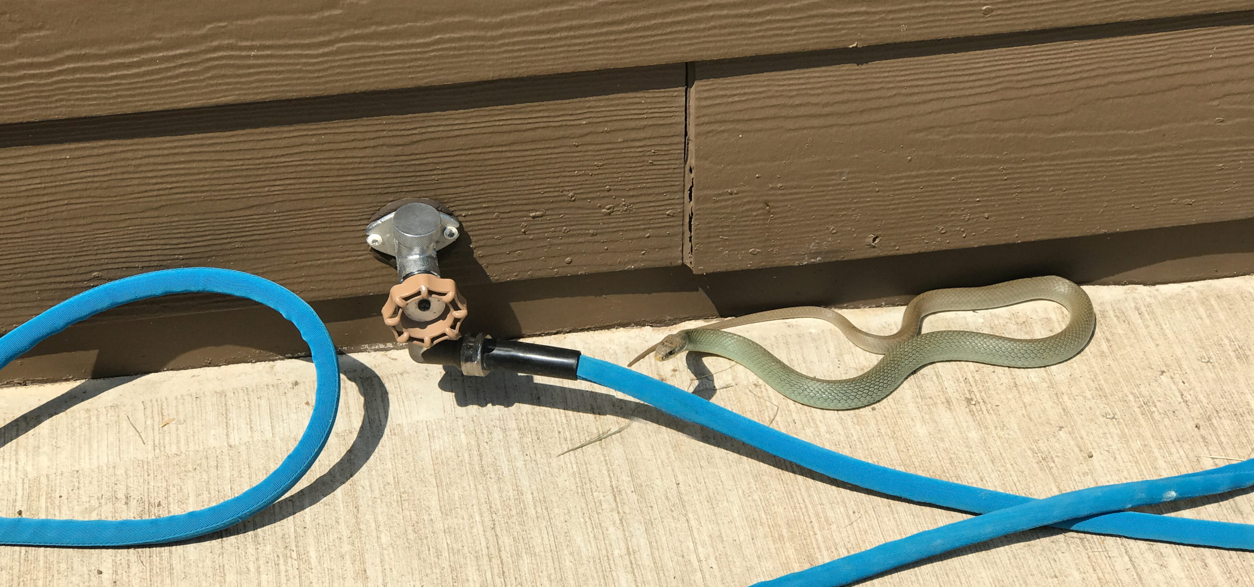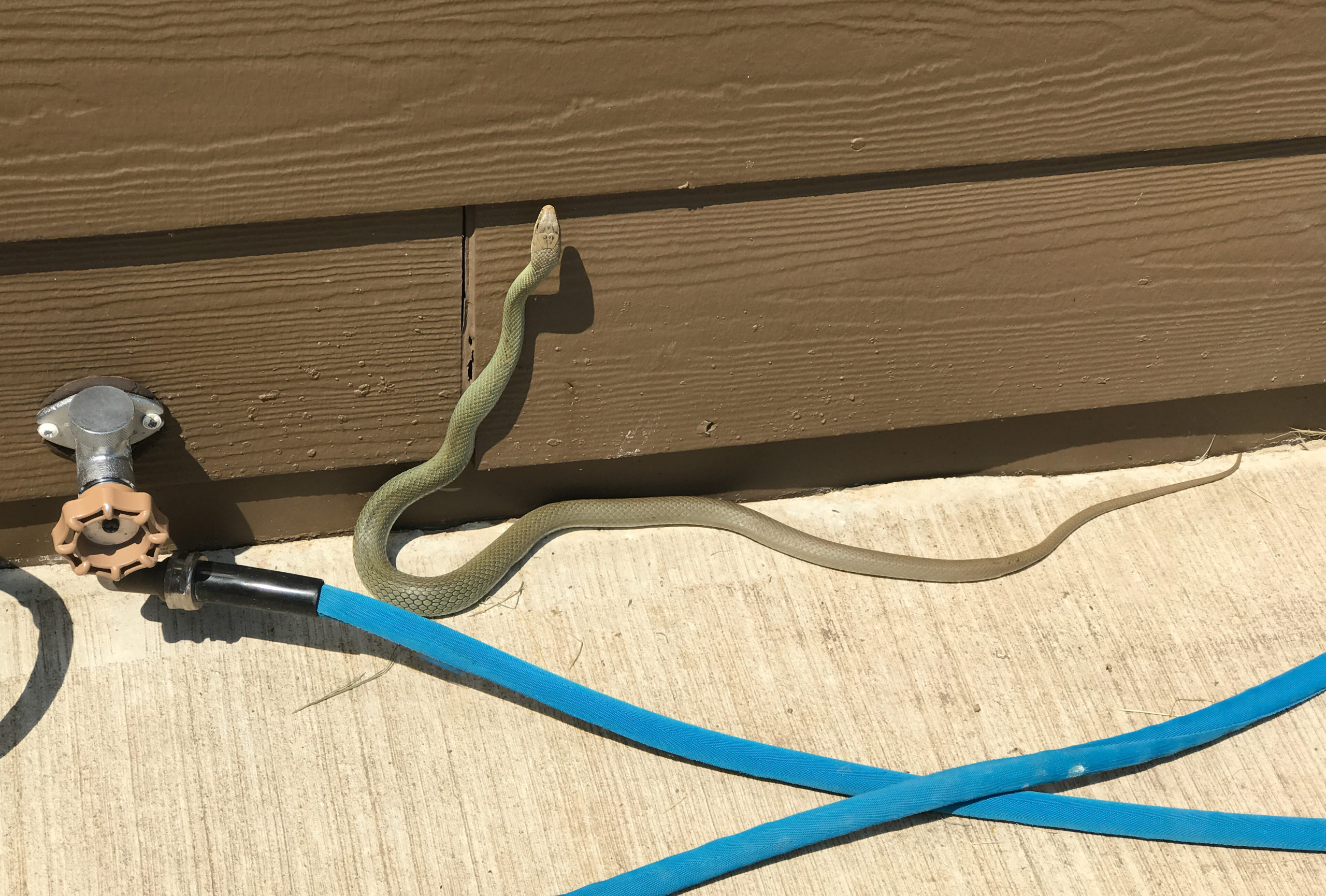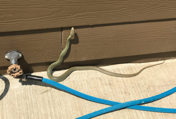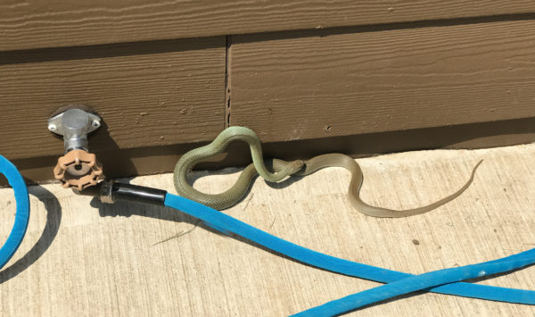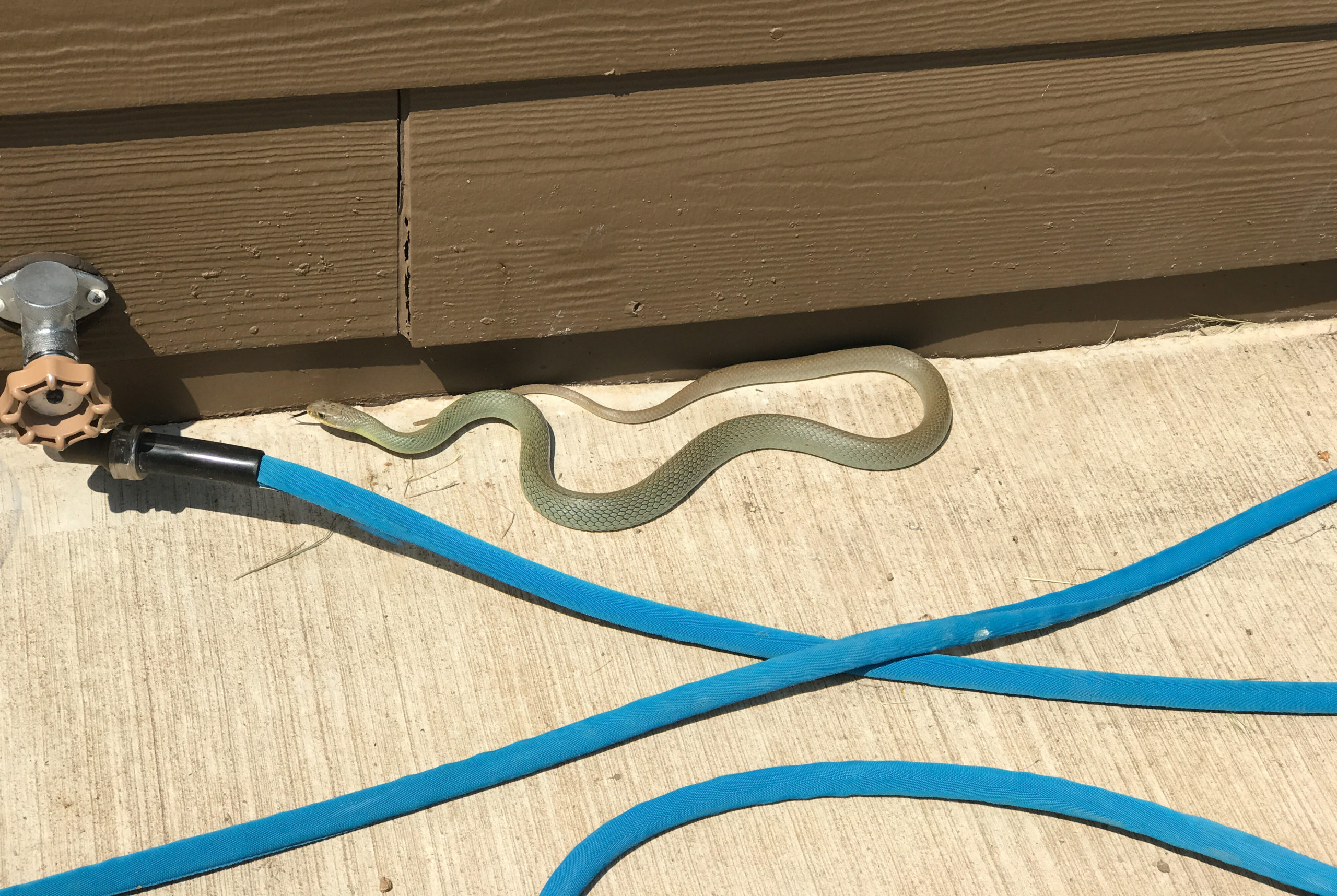 This is how I was greeted yesterday by the little visitor. I passed on picking up the watering hose.