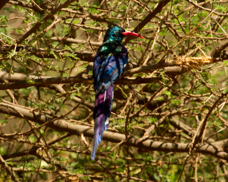 The Malachite Kingfisher has a considerably longer tail than the Grey-headed, doesn’t he? I wish I could have gotten a closer shot with the pretty bird out of the shadows, but he would not cooperate.