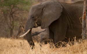 He is munching so hard he has a little elephant coming out of his chest to munch too! Great shot.