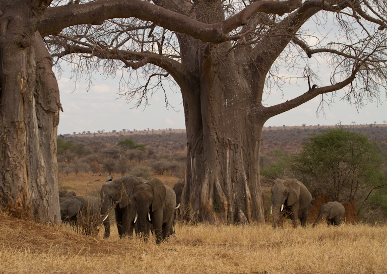 These elephants are almost the same color as the trees. Cool shot