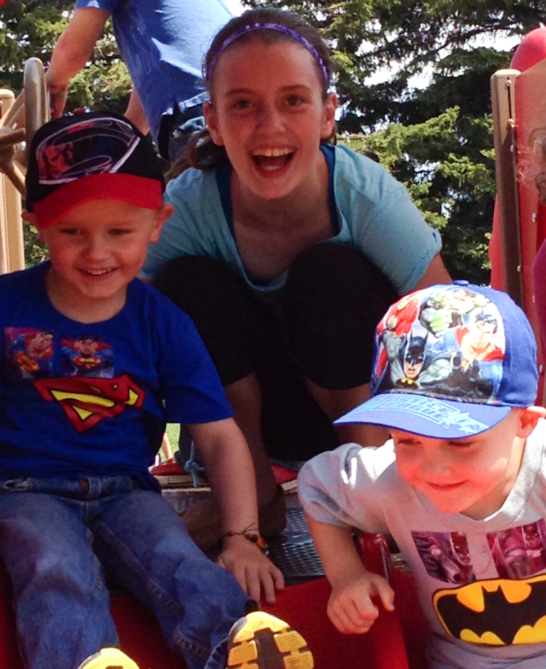 The boys love playing at the park and what could be better than to be joined by their cousin, Brynn. She happened to be there for her school’s end of the year party. What a fun time they had!  They had a treat afterwards with Great Grandma Bonnie  at the Dairy Queen. Thanks to Tiffany for the photos.
