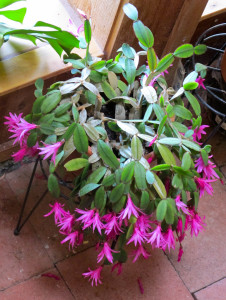 My cactus can’t remember if it is supposed to bloom at Christmas or Easter, so it is blooming now.