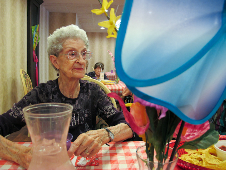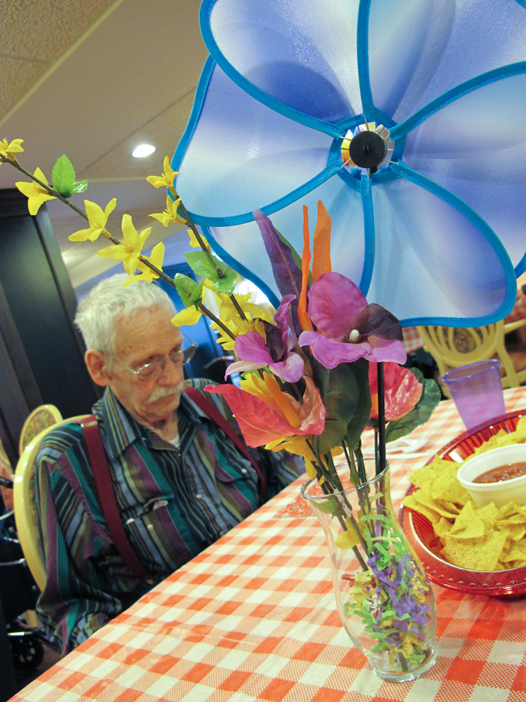 Here are Mom and Dad at Family Night last night. The staff does such a great talent  decorating and everyone enjoys that so much. What a wonderful relief to know that the folks are safe and being well cared for.