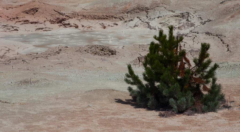 I do not understand how this little bush survives on the edge of a hot mud pit. I guess it has to be tough for sure. There are lots of animal tracks all around in the mud. I would imagine that in the winter the wildlife hang out here to warm up. A group of us has been talking about making a trip here this next winter to enjoy the park when snow returns. I haven’t done that since attending MSU.