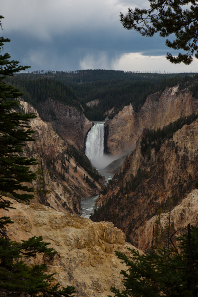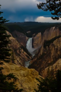 Here are a couple shots of the Yellowstone Falls. The second one is done painterly in LR. Ran out of time, so photos will come later. As you can see, there was a thunderstorm rolling in.
