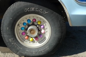 I am not sure who came up with this hiding place for the Easter Egg hunt yesterday, but it was a pretty clever. We had a pretty decent day for an egg hunt. There were horrible cold winds at our house, but in town we were protected. The kids had a good time.