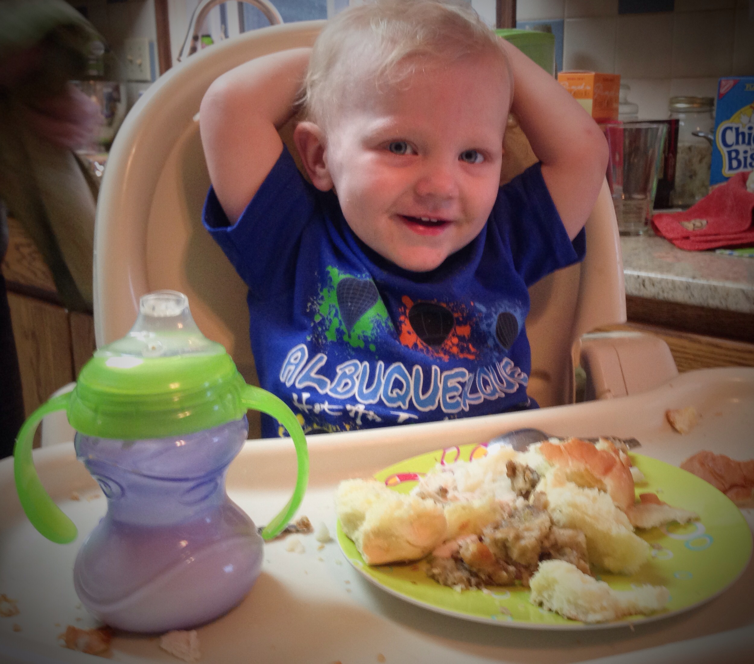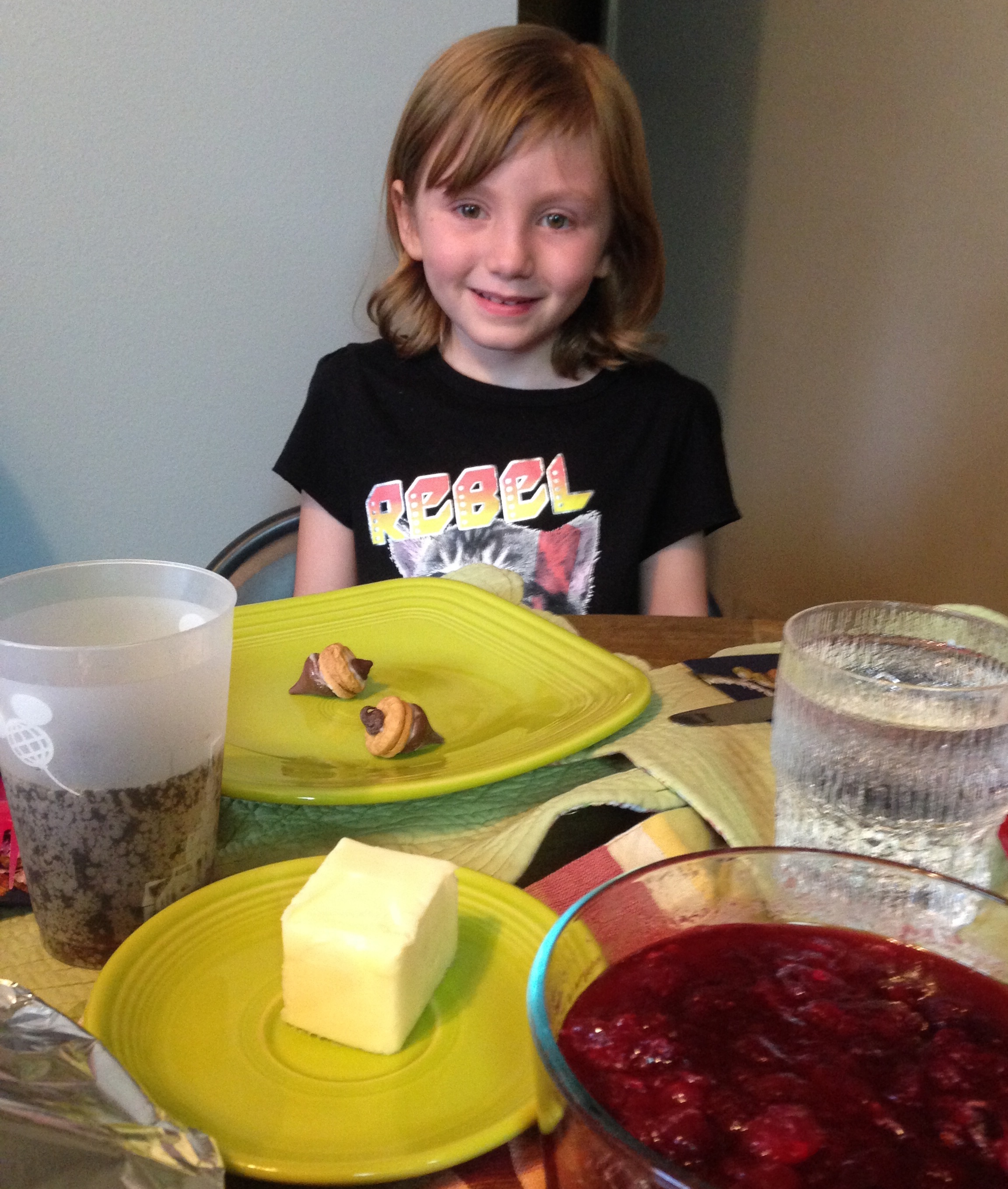 We had the honor last night of sharing a true Canadian Thanksgiving feast with friends Curtis and Leslee. This has become tradition for us and is so much fun. As you can see, their grand kiddos though it was pretty terrific too. The third little guy wouldn’t sit for a photo.