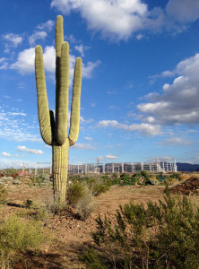Bryton and Gage will be thrilled to see this cactus right by a corral. They obviously have rodeo here, as their is a calf roping chute right there.