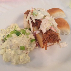 The theme for Highgate’s family night this time was Luau. Here was what we were served. Yummy!! Barbecue sliders with cole slaw and a side of potato salad with pineapple upside down cupcake. Mai Tais and Lemonade to drink too.