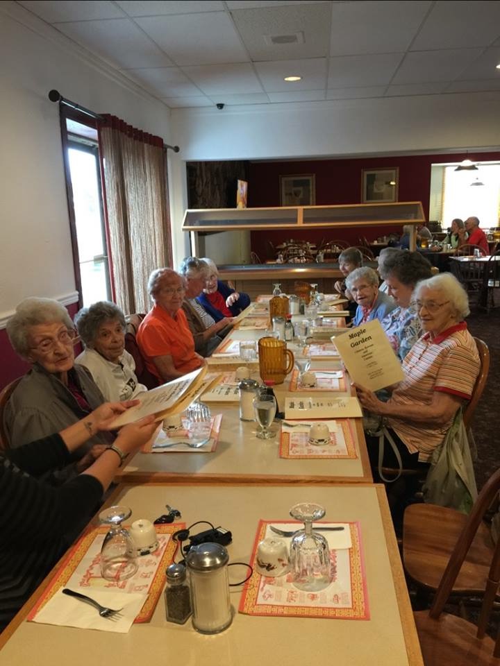 Here is Mom enjoying her outing with the ladies from Highgate’s Manor. The men have had a group called ROMEO(retired old men eating out) which goes out for lunch every Wednesday. The new director of Life Enhancement, Jacob, has incorporated it’s mirror image, just for the ladies, Juliet Jamboree. I must ask if the letters stand for something like romeo does. They enjoy an outing to a local restaurant or have a social in house. The ladies get to pick where they go and what could be better than Maple Garden!