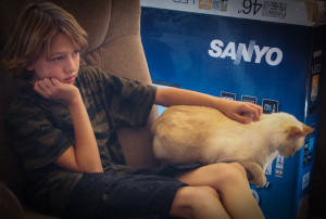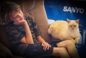 Well, not really his cat, but mine. But he still loves Jade dearly and you can see it is very mutual.