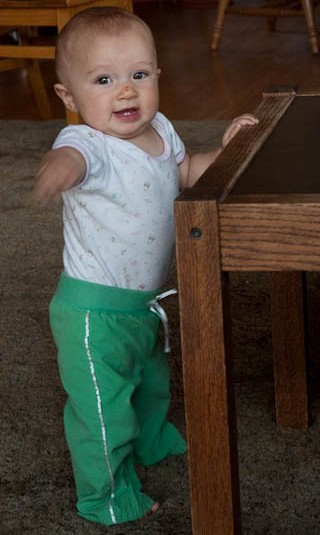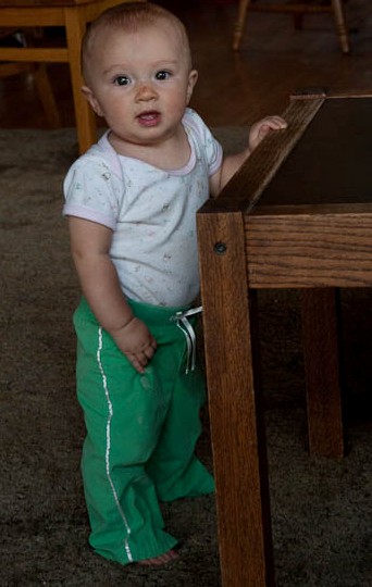 Lily is determined to walk by 8 months. She seems pretty little at 7 months to be so brave. These photos just say daring to me. I love how she looks like she is shaking her fist at me in that one.