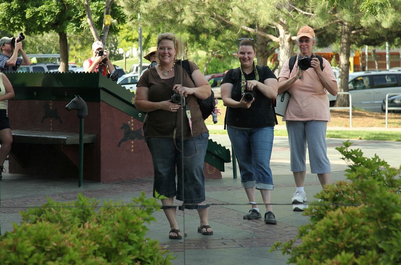 Wednesday, July 22 – Today is judging day at the Montana State Fair. It was a whole lot of work last year and I would imagine it will be again this year. Here are a couple of photos from the World Wide Photo Walk. I am the one that actually took the self portraits, as  we were reflected in a window at the Carousel. As you can see, there are other photo walk attendees taking photos too.  It was almost a 100 out when we were walking. Those backpacks full of gear got very heavy and very hot. Lots more photos to go through yet.