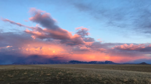 Here is proof of why when you are taking a photo of the sunset, always turn around to see what the light is doing behind you. We were coming up the hill from the barn and saw those gorgeously lit clouds to the east. Sure enough, when we got up to the house, this was the view of the Highwoods. Sun setting in the west and the view to the east with all that beautiful color bouncing off those clouds.
