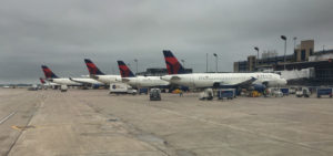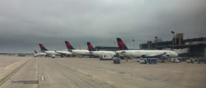 Time to head for the skies. Here are all the Delta planes getting ready to head out as we taxied by.