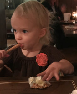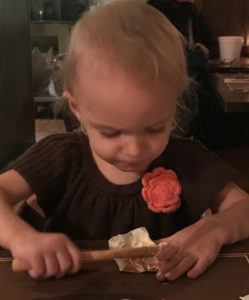 RoRo thinks butter is pretty yummy. The lighting was terrible, so these photos are poor, but you get the idea. Breadsticks + butter=pure Heaven. Yum!! Celebrating that 2year old Birthday.