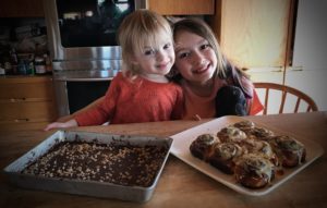 These two love to bake; today it was orange rolls and Heathbar cookies.