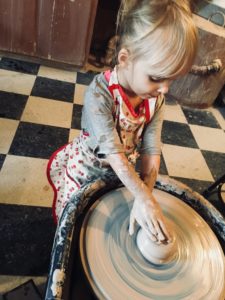 Thanks to my daughter-in-law for this cute shot of my granddaughter doing pottery on a wheel at 3 years old. She just had her birthday yesterday.