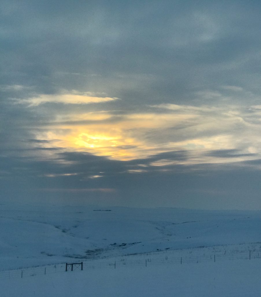 After a snowy day with no Mr. Sun peeking through to get rid of the Whiteout conditions, just a little peeking through at sunset.