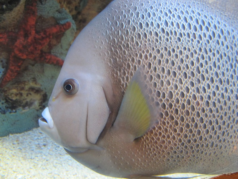 Sunday, November 15 – I snapped this one while we were waiting for our food at the RainForest Cafe. Their salt water tanks are gorgeous. A bit of distortion here, but it was through glass and fish was moving. We are heading out shortly to move Mom and Dad. It is just at freezing right now and my toes are so cold from doing chores. Nick got stuck in Seattle last night, but is flying out this morning for HongKong. I guess there was a problem with the plane. At least the airlines put him up overnight.