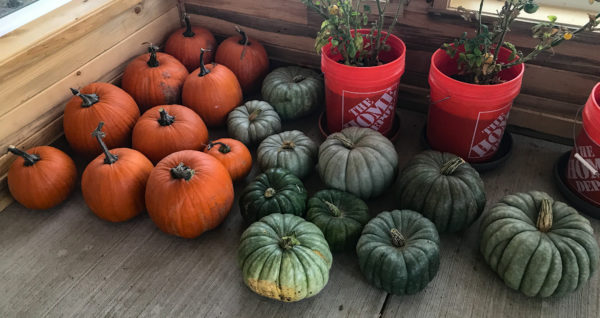 We had a good crop of pumpkins! The grey ones were a new variety I tried. I have grown the whites in the past. . The 10 big ones are in the garage with a heater. They are all over 50#! Not sure what I will do with them.