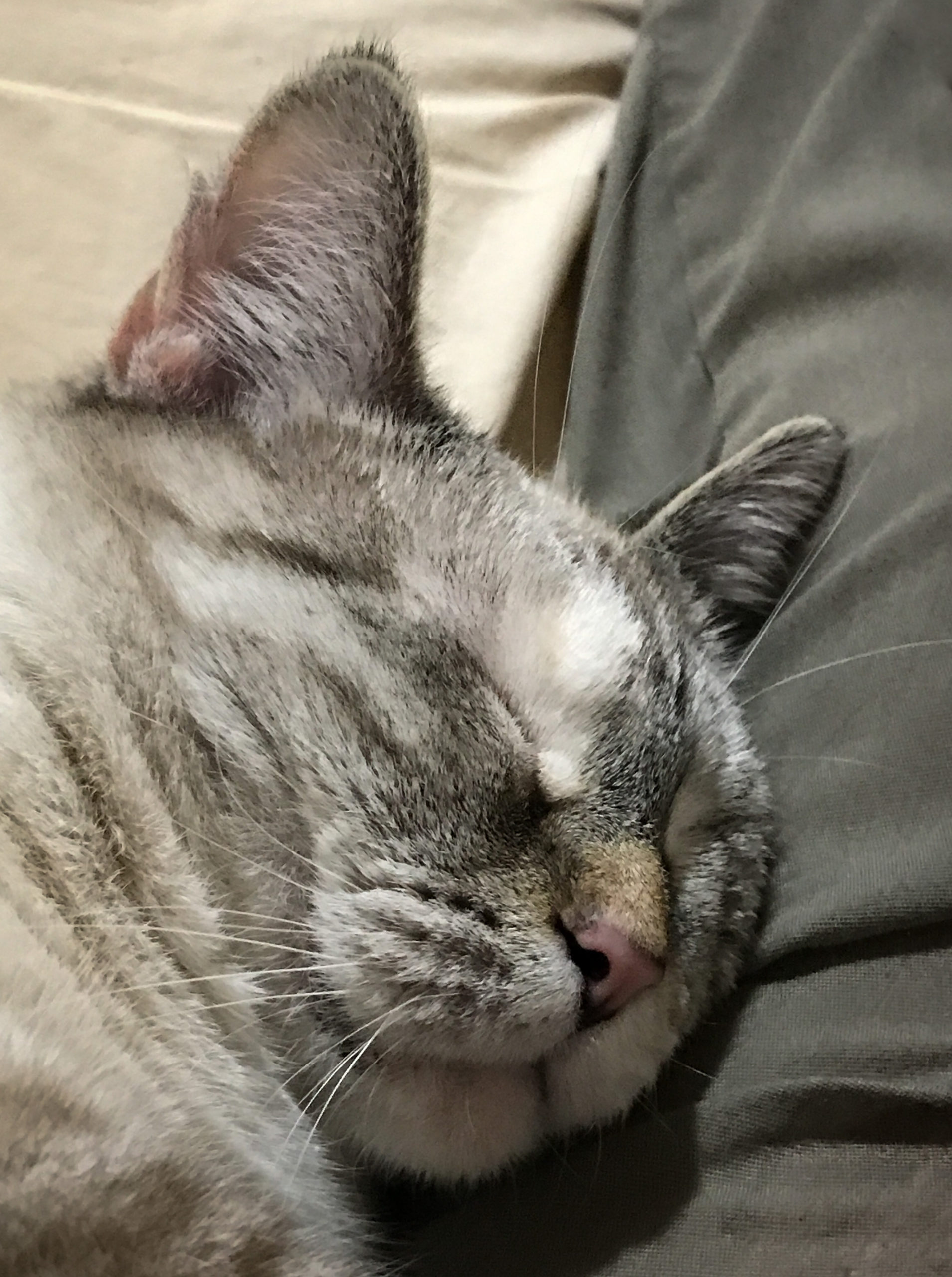 This cat sleeps many hours a day and night. She needs her beauty rest, I guess.