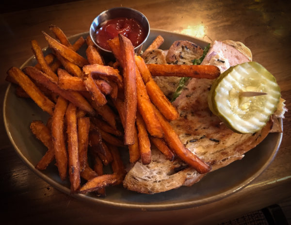 Had a late lunch today – Chicken Wild Rice Soup and Cranberry Turkey Sandwich with Sweet Potato Fries.