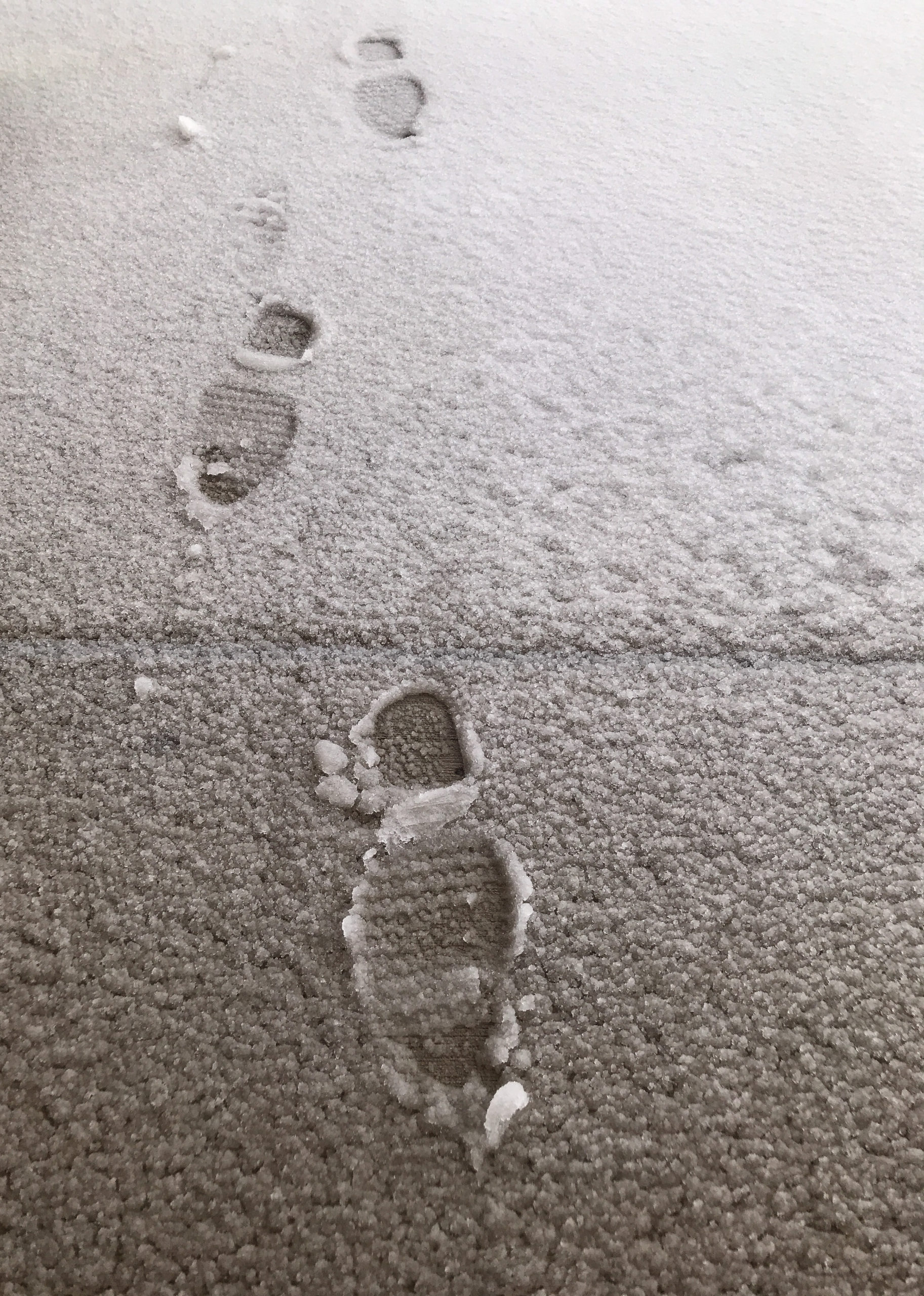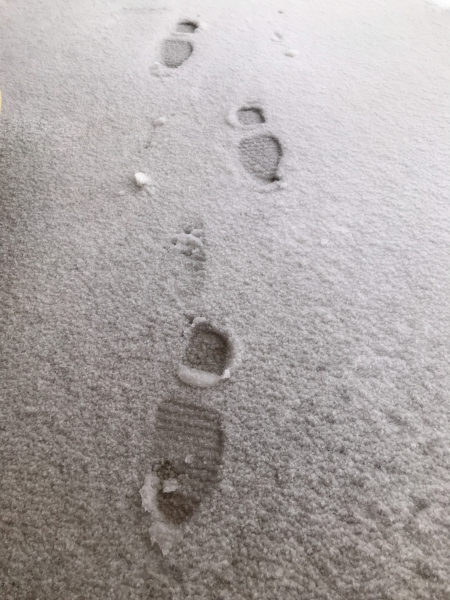 Just snapped these footprints coming up our sidewalk. It is slush at this point, but will turn to ice later tonight. Lots of heavy snow this afternoon before the arctic air hits. Not fun out there driving. The weather station is calling for up a possible 14 inches locally.