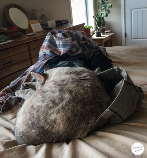 Jasmine has the right idea about what to do on a day like today when the weather is awful. You curl up on some clean clothes of her human dad’s and take a long nap. We have so much snow and the wind is roaring. Can’t even get to the garage because of the big drift there. Snow blower time!