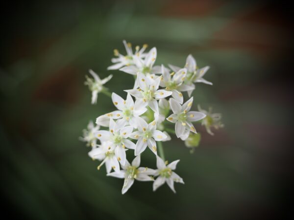 These are 1/8th inch flowers on my Garlic Chives plant. I keep them going in the heated porch and outside in the summer. They are happy right now.