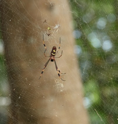 Creepy spider but really colorful. Love the up close detail of the web. Great shot!