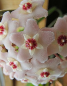 Thursday, May 13 – A special friend’s family gave me this Hoya to remember her when she passed away. It was one of her favorite plants and is very old. The first photos are from a few days ago and the later ones were taken this morning. Isn’t it strange how the blossoms change when they open; like little fuzzy teddy bears from those waxy buds. They smell so good too. All were taken with my G11. It is snowing like crazy out. This is getting so old. I am taking Becca shopping today for her birthday which is actually Thursday, May 6. Happy Birthday, Becca!! Her mom gave her a camera for her special day, so we have another budding phototog in the family.