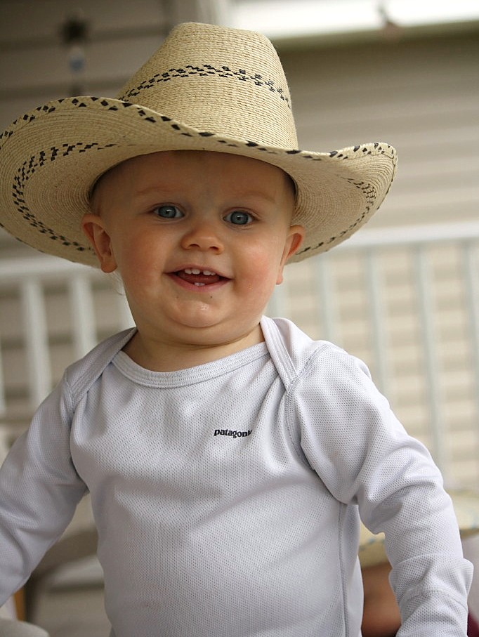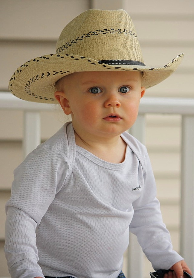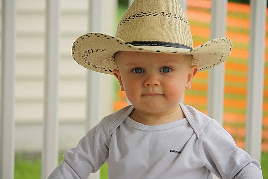 Thursday, June 17 – Here comes Gage all outfitted in his big cowboy hat. Tiffany has been sending awesome shots of the boys and I just had to share. She is doing such a gorgeous job on her portraits. That Mothers Day gift of a Canon camera from Bryant was a goodie; the gift that keeps on giving! Such a nice job, Tiffany. Keep shooting away!!