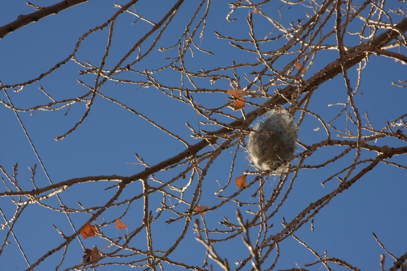Hopefully this is not abandoned, but just vacant right now until spring arrives. The bird who made this used some pretty blue baling twine. ISO 100, F/16. 1/30th.