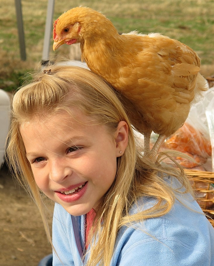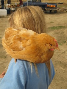 Monday, October 18 – Becca has a favorite Buff Orpington rooster at the farm and dearly loves him. Charlie used to be Emily, until someone told Becca that he was not a she. We went for the final produce pickup yesterday and had such a great time. Eric and Audra served carrot soup and hot cider which were so good. We have a regular little chicken whisperer in the family. That silly rooster goes everywhere with her and is quite the pet already. She could even get him to sleep on her shoulder, as you can see. Becca, you have quite the buddy there. I wish that you could have him in town. Wouldn’ t he love to live in your playhouse and then roost on your bedframe at night? Don’t know if your mom would go for that and the neighbors wouldn’t like your alarm clock.