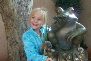 Monday, November 8 – Emma just could not resist kissing this frog statue at a shopping area in Sedona. Guess she has heard that you need to kiss a few frogs before you find your prince. My metal sculpture that I bought for my bathroom came yesterday. They shipped it for us and I am so glad that I picked what I did. It is in copper and enamelled in orange and gold; shaped like a hug sun with wire rays. Now to get brave enough to put that 1st nail in my bathroom wall.