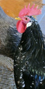 Monday, December 20 – Just went to the chicken house to check on the water. It froze in the waterer last night and I had to chop ice this morning. All was well this afternoon though. It is pretty cozy in there actually. Just had to get some chicken shots. They are such characters. I found out fast that macro was not an option. They reach up and grab my hair if I get too close. I am including a couple shot of two of the roosters (I have 3). The golden one is a Buff Orpington and I have another one of them. The black one is an exotic mystery breed chicken. Guess I will have to get a book to figure out what breed he is. I have a little exotic breed hen that sort of matches him. He is my crowing rooster and is very loud. The hen is a Barred Rock and I have 8 of them. They are really nice chickens and good layers. I have 5 of the Buff Orpington hens too. I love chickens and it is so nice to have my chicken coop full again.
