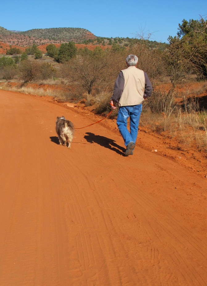 Saturday, January 22 – Tiffany’s beloved dog, Bailey, died last night(Thursday). It was not unexpected, as she had been suffering from Lymphoma for several months. It is still so hard when a pet is such a big part of your family. My heart goes out to Tiffany today. I remember how much it hurt when I lost Tripod several years ago. When we welcome a pet into our lives, we know, that more than likely, we will outlive them. It is something all of us who have a big heart for our fur babies will have to face. Tiffany, my heart aches for you today. I am so glad that you had her for the time you did and that you made the decision to spend these last few months the way you did. You loved her and she knew that. Here are a couple shots of Shep I took yesterday when he was out with us for a trip to Red Rock Crossing. The picture of Walter and Shep just seemed appropriate somehow today. (Isn’t that red soil something?) Shep is Bailey’s son and we are so glad that we have him.I wish I had a picture of Bailey to share.