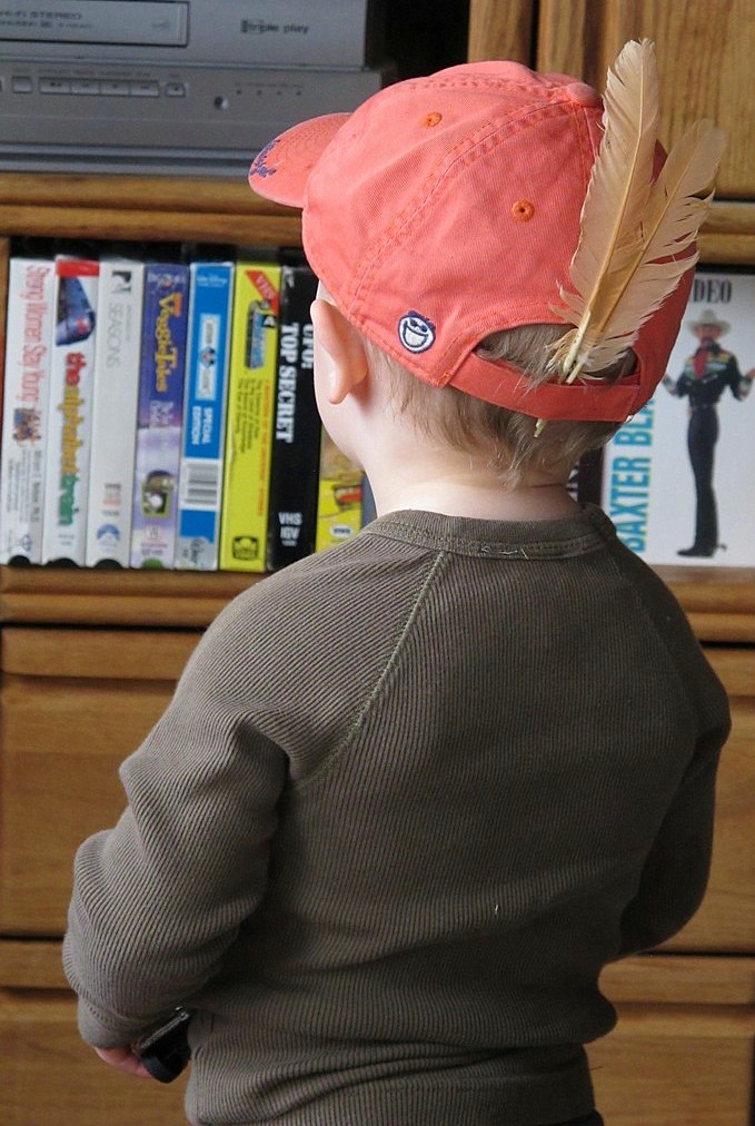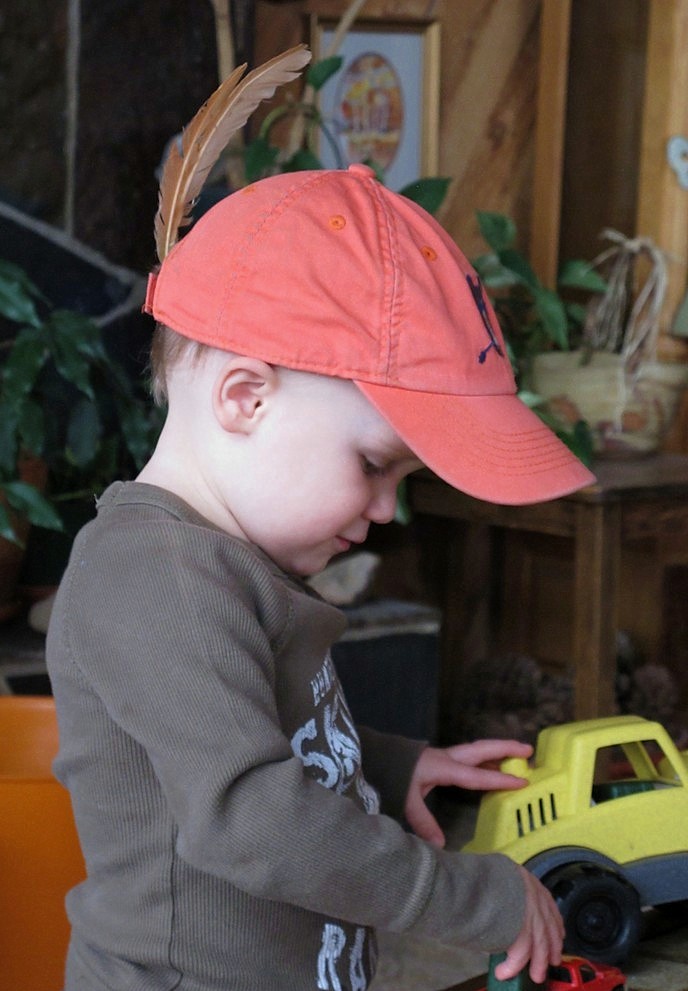 Monday, April 4- Gage loves feathers and just had to have a few from my Buff Orpingtons to wear in his hat. There’s nothing like a couple of chicken feathers in your hat to make you feel extra “cool”.