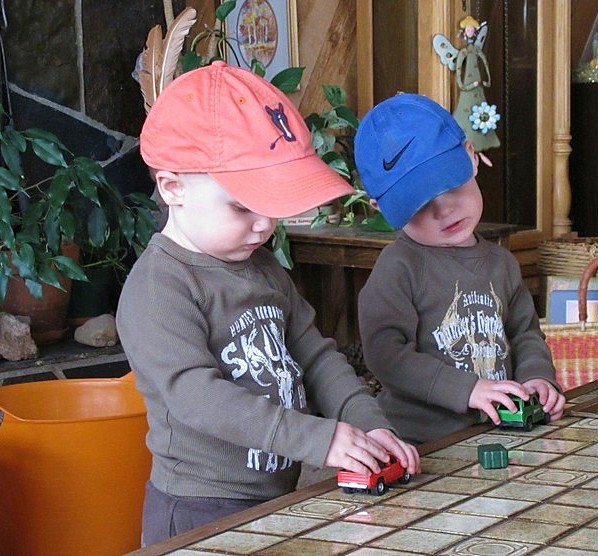 Tuesday, April 5 – When you don’t have a  feed truck to carry bales, you have to improvise. Looks to me like you boys have it very well thought out.
