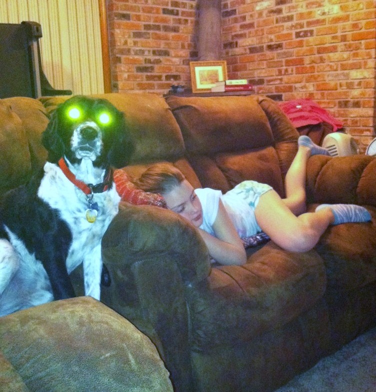 Sunday, April 10 – Bobbi shared this awesome shot of her Possessed Dog, Hunter, with me today and I just had to make it my picture of the day. What a shot, Bobbi. That is some great ‘red-eye’, oops, I guess it is ‘green eye’ going on there. Who says green eye can’t work in a shot? I sure think it does here. Thanks so much for sharing this with me, Bobbi. I have had a great laugh over it and it really is awesome. That new iphone takes a mean photo; literally!!