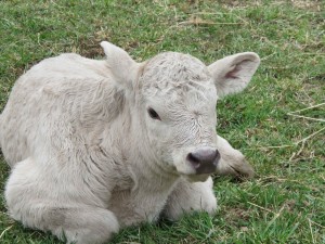 Wednesday, April 13 – The wind is howling out, blowing in a winter storm, or so the weatherman says. I sure hope it misses us. It can rain all it wants, just no white stuff, Please! Thought I better get some shots of my new Charlaise/Angus bull calf that is such a miracle. I thought the momma cow had aborted in January, but obviously she didn’t. Lots of issues for the last few months requiring 4 visits from the vet, but it was all worth it, as you can see. He still needs a name though.