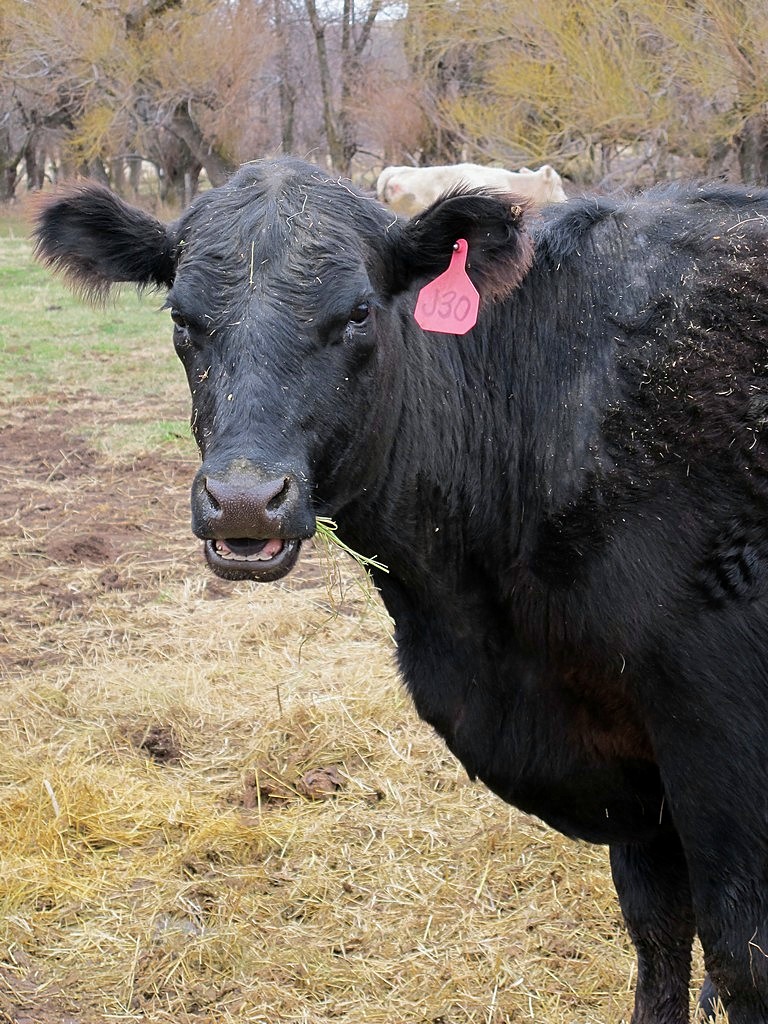 Thursday, April 14 -Â J30, also known as My Girl, is one of the friendliest cows we have ever raised. She will let you pet her right out in the pasture. She sure looks like she might be remarking, “you don’t say”, in these pictures. A very pretty cow, I think.