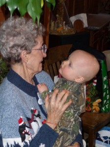 Saturday, April 16 – Tiffany and I stopped at Mom and Dad’s for a visit a few weeks ago. What a great time the boys had and I think the great grandparents had as much fun as they did. Bryton is very taken with Grandma Bonnie, as you can see here. Thanks so much, Tiffany, for making their day and for sharing these shots.