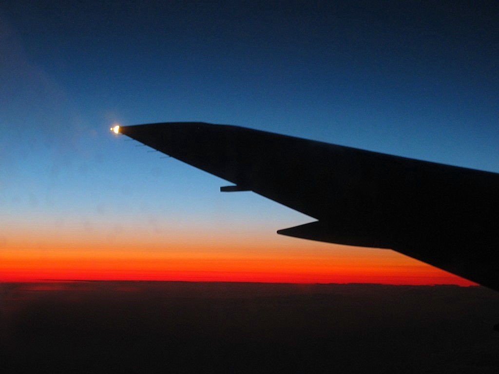 I am glad you made it there safely, if uncomfortably…Great shots from the airplane, and the sunset silhouettes, too! The bottom one is fantastic, just like it really is!