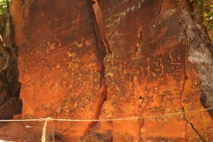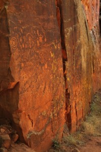 Saturday, July 23 – Debbie and I visited V-V ranch where the closest Petroglyphs to Sedona are. Here are some overall shots of the more than 1020 drawings. Closeups to follow.