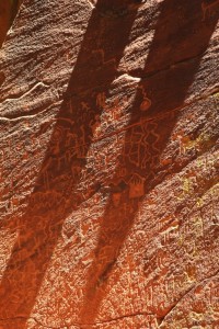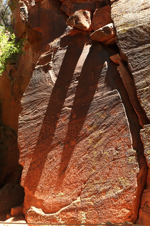 Monday, July 25 – The Sinagua Indians used this cliff of Petroglyphs as an Equinox and Solstice Calendar. We stayed long enough to watch how this works when the sun beams hit the wall from the overlying rocks. They would plan their planting and harvest around this calendar.