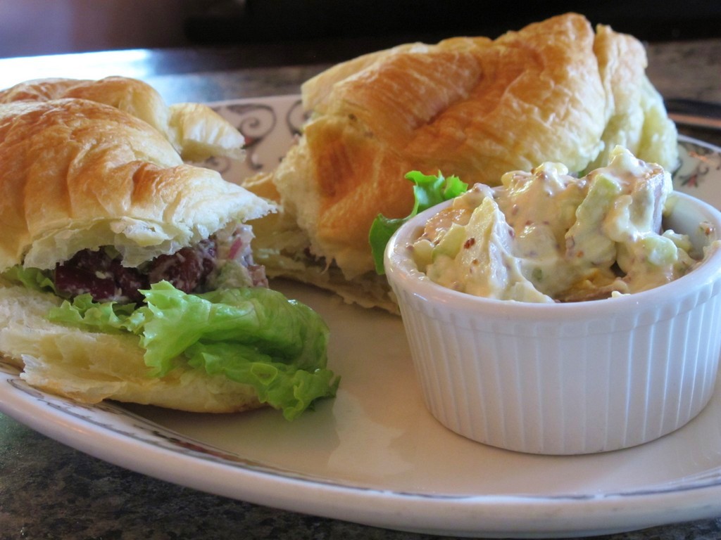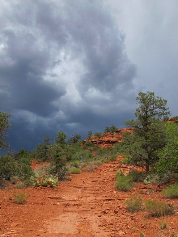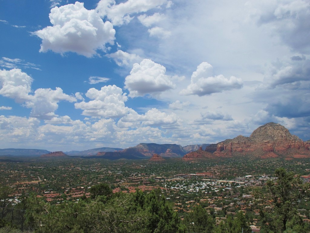 Sat, July 30 – Thelma and Louise headed up to the Airport Vortex today. Also observed West Sedona from the Airport lookout. What a gorgeous sight as the rain clouds moved in. What rains we had this afternoon. It just poured and poured. This is monsoon season in Sedona. Had a fantastic lunch at Heartline Cafe; Chicken Piccata and Chicken Salad with Apple Pie for dessert. Yum! Heading for home tomorrow via the Grand Canyon and Antelope Canyon with a stop at IKEA.