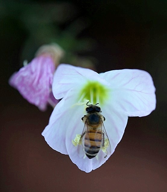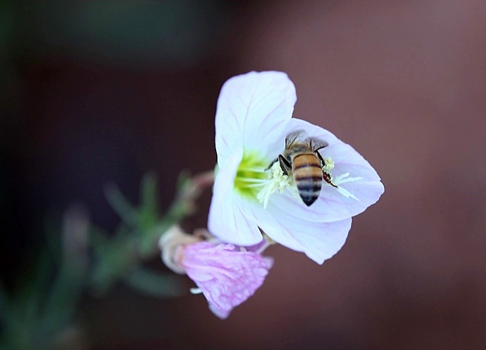 Tuesday, August 23 – This little honey bee was very busy gathering pollen for honey production. You can see the evidence all over his little legs. They have been very busy lately. Can hardly wait for those buckets of honey we get from the bee man each fall.